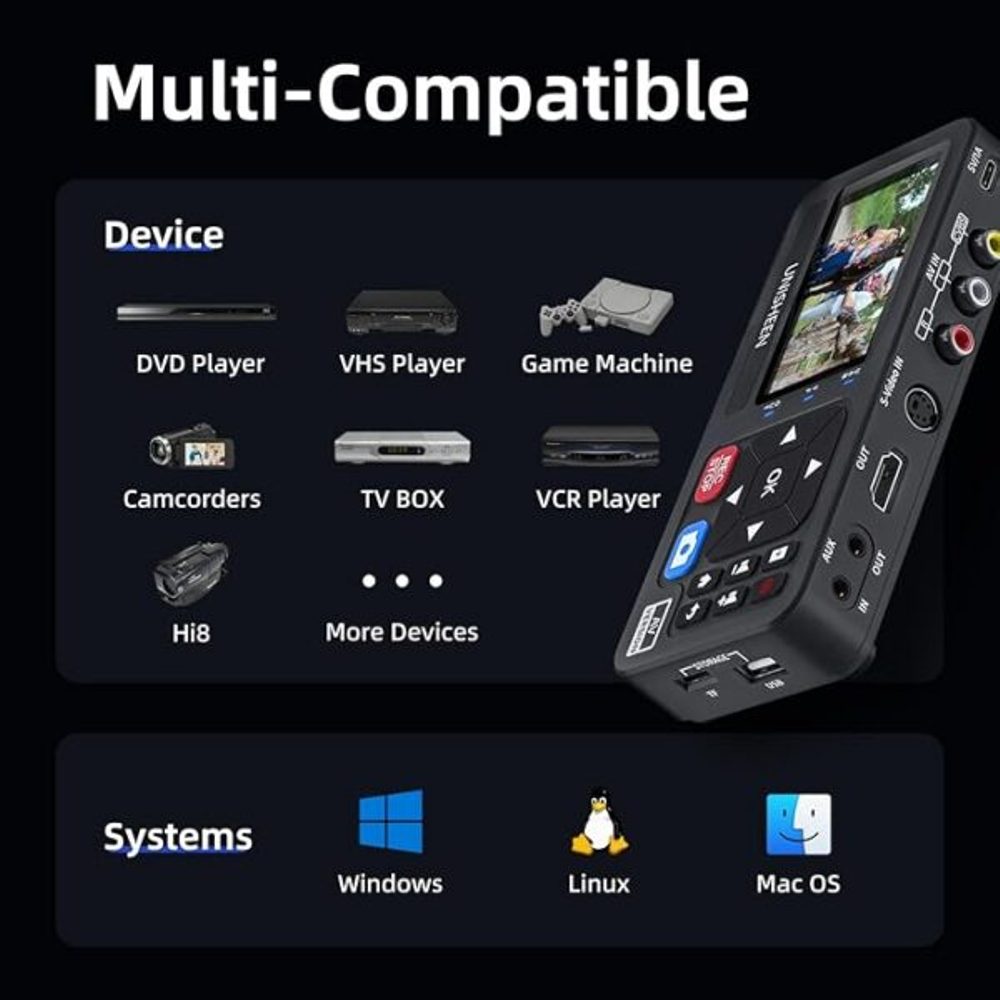 Transforme os seus vídeos antigos em ficheiros digitais com qualidade e simplicidade – o UR230A é a ferramenta ideal para dar nova vida às suas memórias.